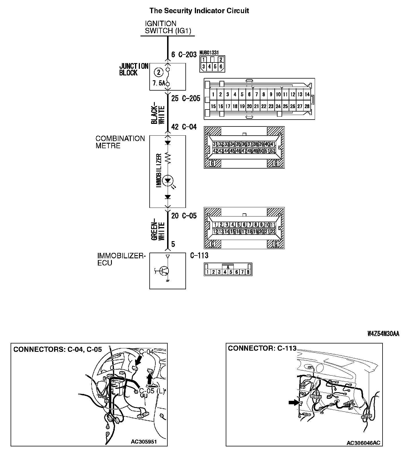 INSPECTION PROCEDURE 4: The Immobilizer Indicator Light does not Illuminate.The Security Indicator Circuit Part 1: