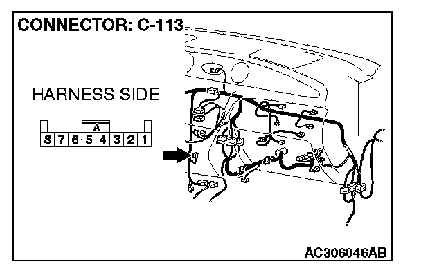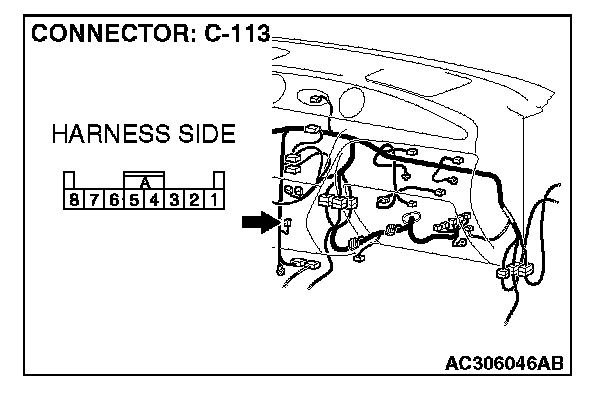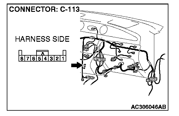 STEP 1. Check immobilizer-ECU connector C-113 for loose, corroded or damaged terminals, or terminals pushed back in the connector