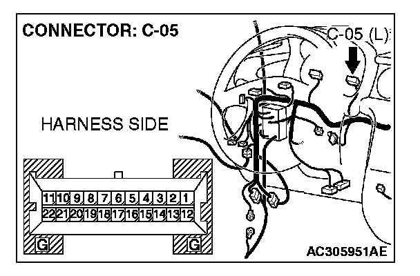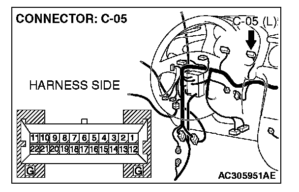 STEP 4. Check the wiring harness between combination meter connector C-05 (terminal 20) and immobilizer-ECU connector C-113 (terminal 5).