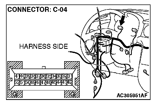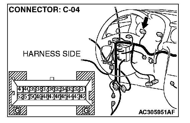 STEP 6. Check combination meter connector C-04 for loose, corroded or damaged terminals, or terminals pushed back in the connector.