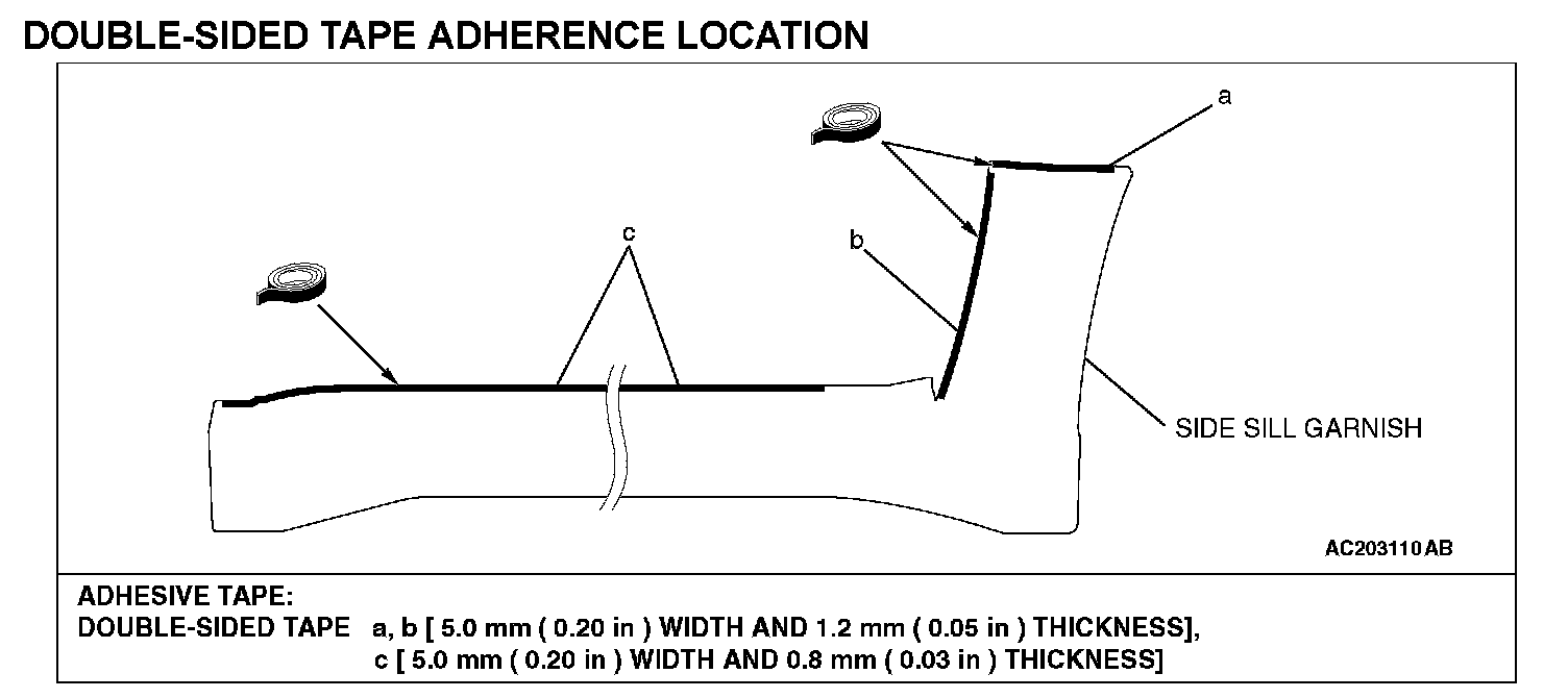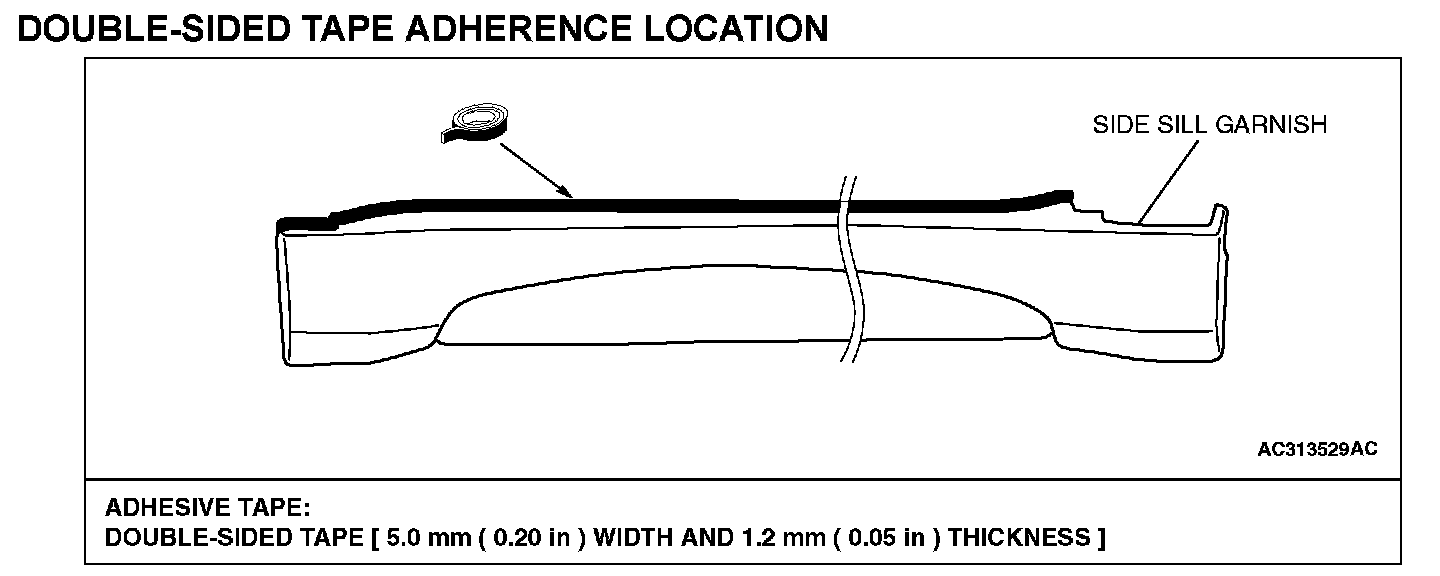 4. Adhere the double-sided tape as specified on the side sill garnish. (Refer to double-sided tape adherence location or.)