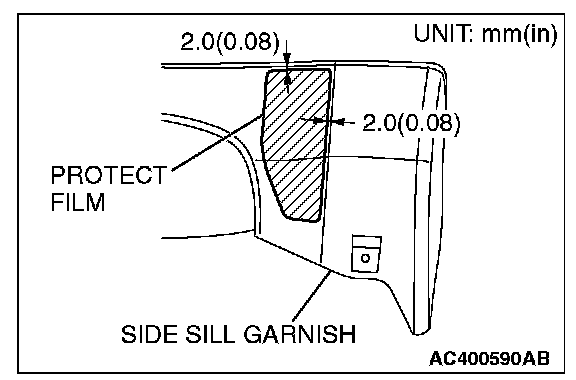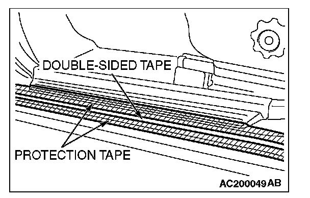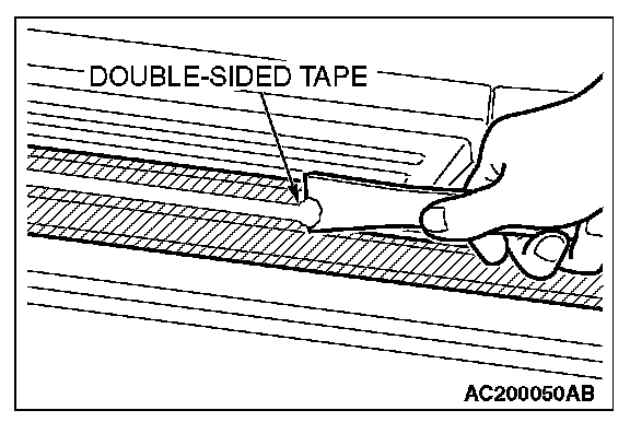 NOTE: If the double-sided tape is difficult to affix in cold temperature, etc., warm the bonding surfaces of the body and side sill garnish to about 40 - 60 °C (104 - 140 °F) before affixing the tape.