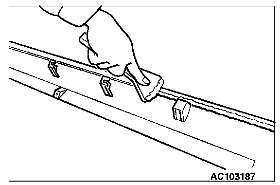 Gently lift and remove the side sill garnish. If there is any double-sided tape remaining on the side sill garnish, remove according to the following instructions.