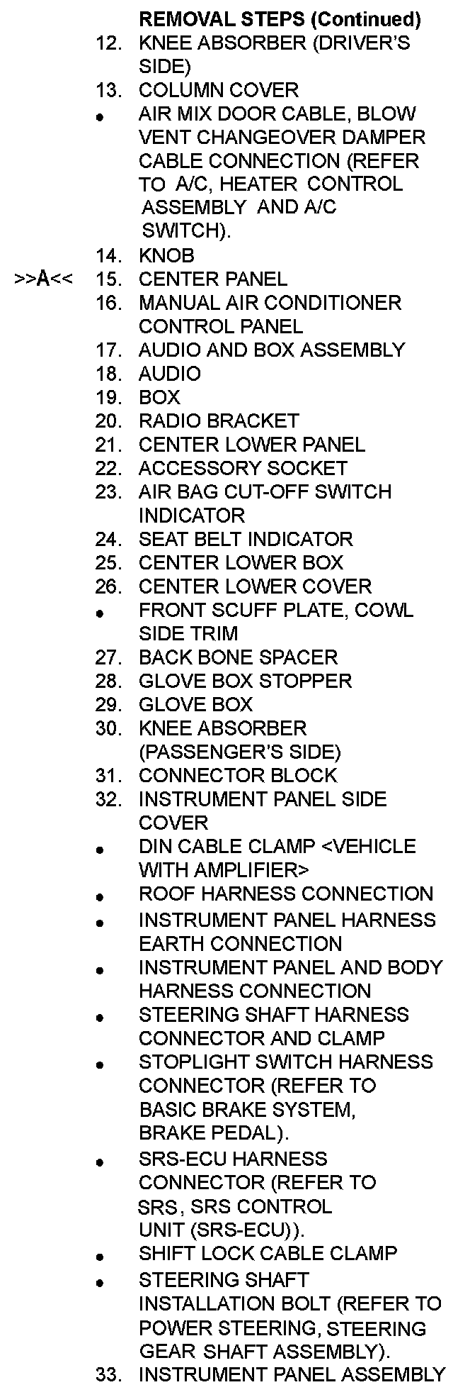 INSTRUMENT PANEL ASSEMBLYREMOVAL AND INSTALLATION