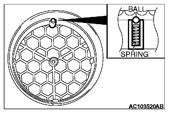 The instrument panel air outlet may remain on the instrument panel side when disassembling the lower panel of the instrument panel and the instrument panel garnish. Carefully disassemble the parts remaining on the instrument panel side to prevent the ball and spring from falling. Assemble the ball and spring according to the figure to the left if they fall off.