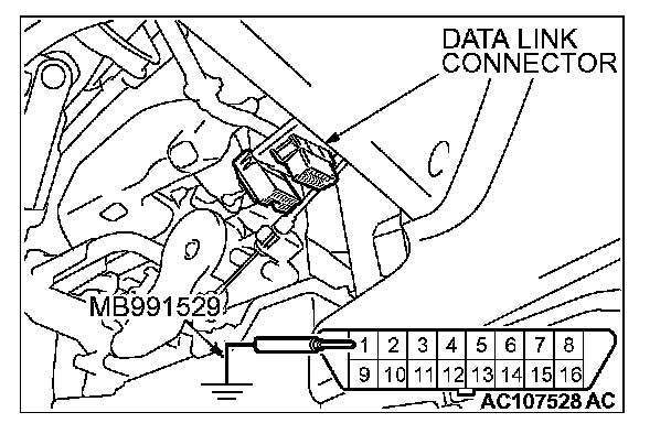 1. Disconnect scan tool MB991502 from the data link connector, or disconnect data link connector terminal 1. form the ground.
