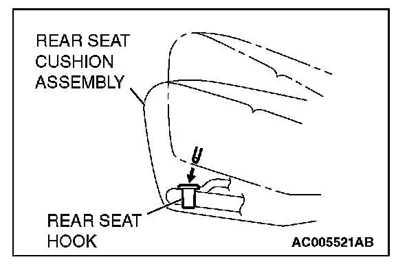 Fit the rear seat cushion into the rear seat hook securely.
