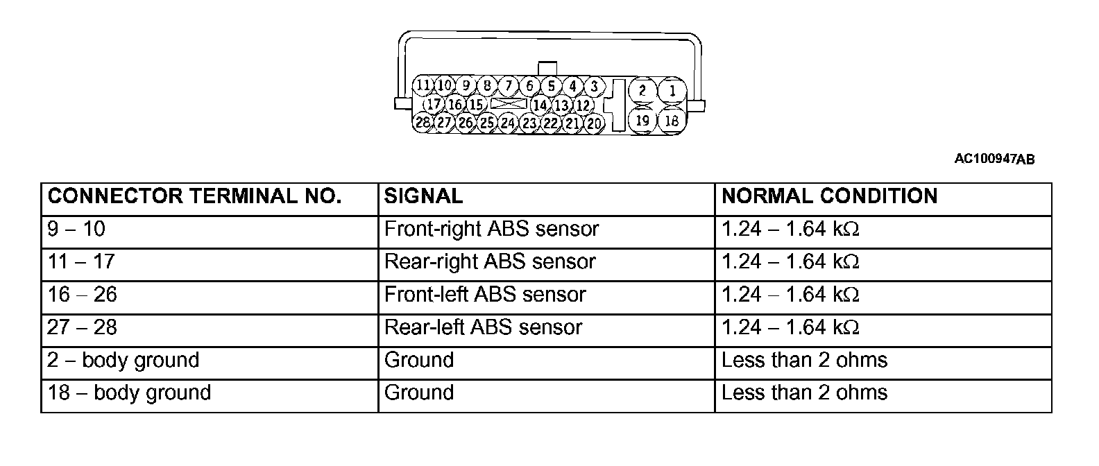 CHECK AT ABS-ECUTERMINAL VOLTAGE CHECK CHART
