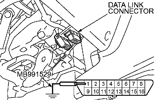 1. Use special tool MB991529 to ground number 1 terminal of the data link connector.