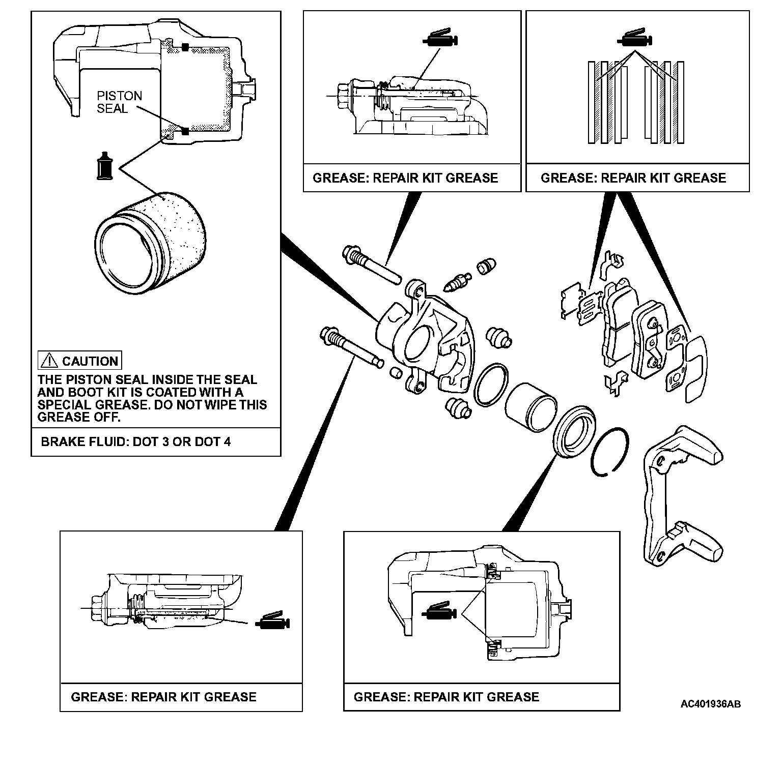 ^ Check the pad for damage or adhesion of grease, check the backing metal for damage.