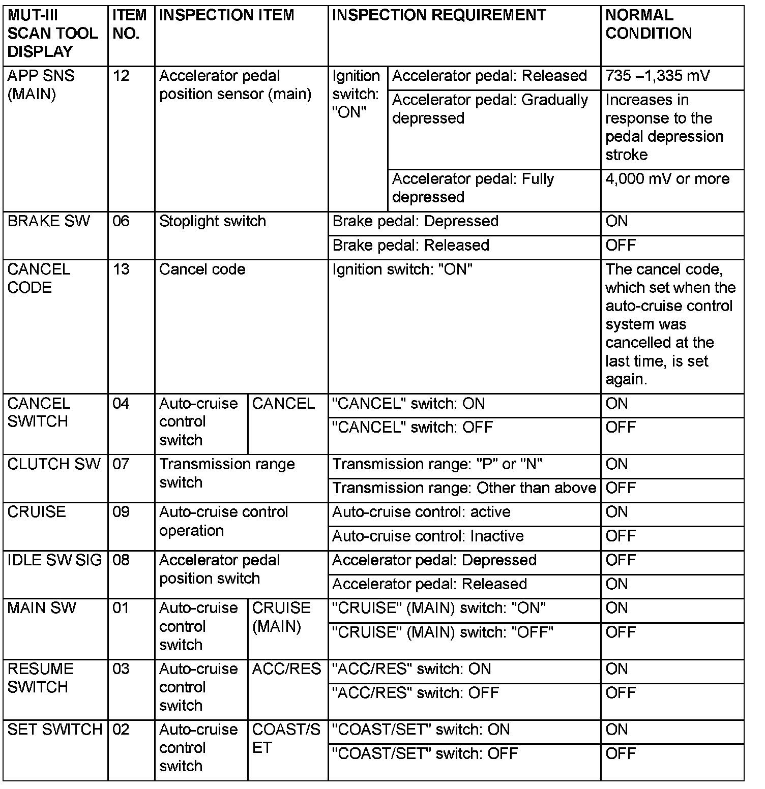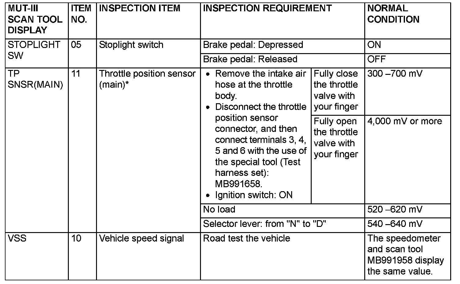 NOTE: *:Disconnect the throttle position sensor connector, and then delete the diagnostic trouble code that was recorded during the inspection with the use of scan tool MB991958 after the inspection has been completed.