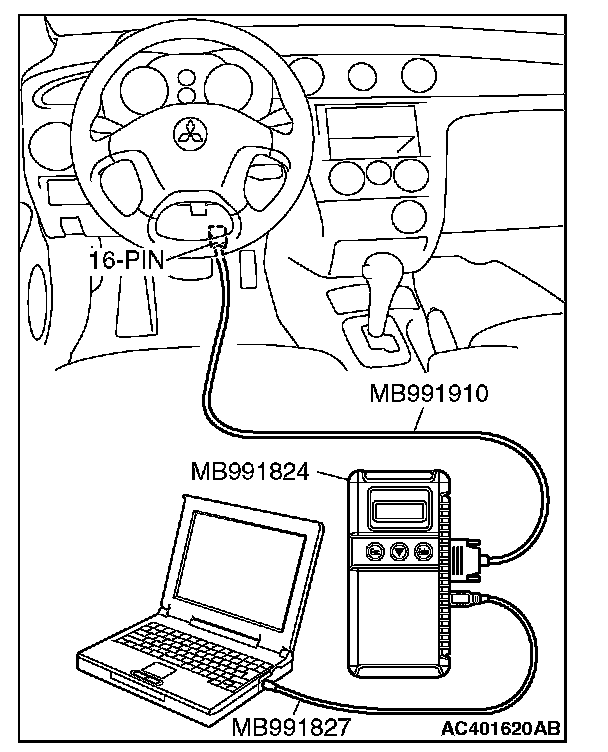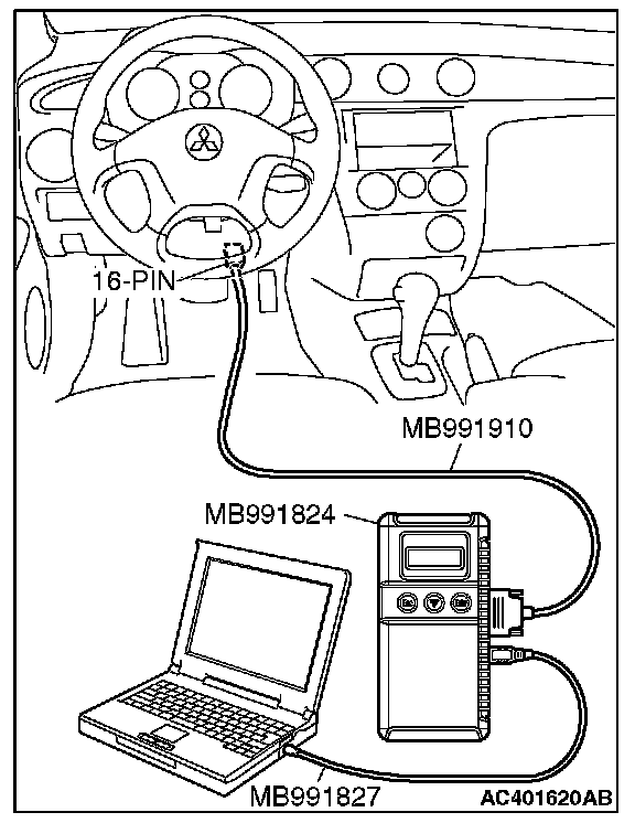 1. Connect scan tool MB991958 to the data link connector.
