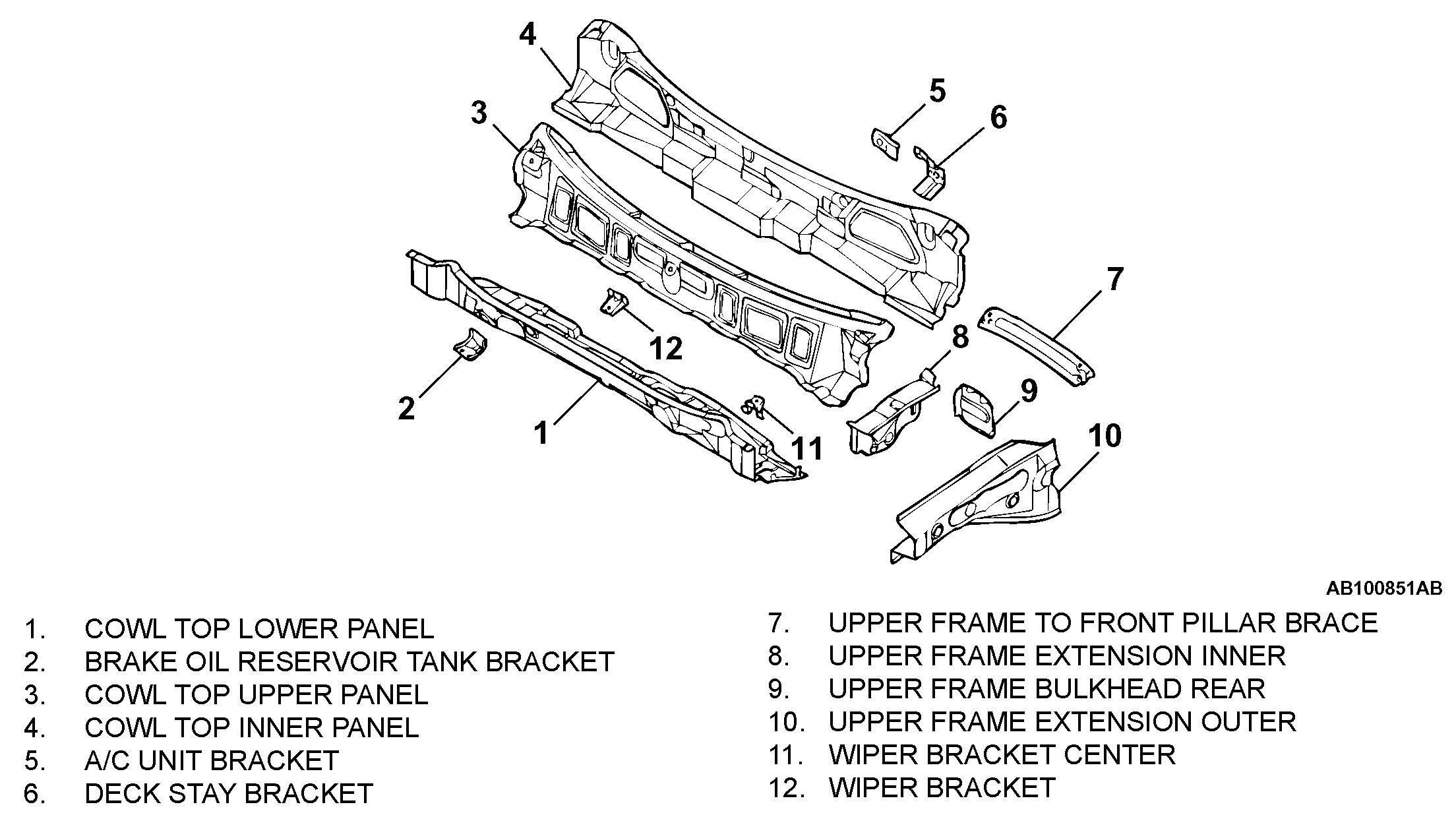The cowl top panel features a closed section structure. A bulkhead was added inside the upper frame extension. Further, an upper frame to front pillar brace was added to connect the upper frame extension and front pillar. The aim for this structure is to improve safety upon impact and driving stability.