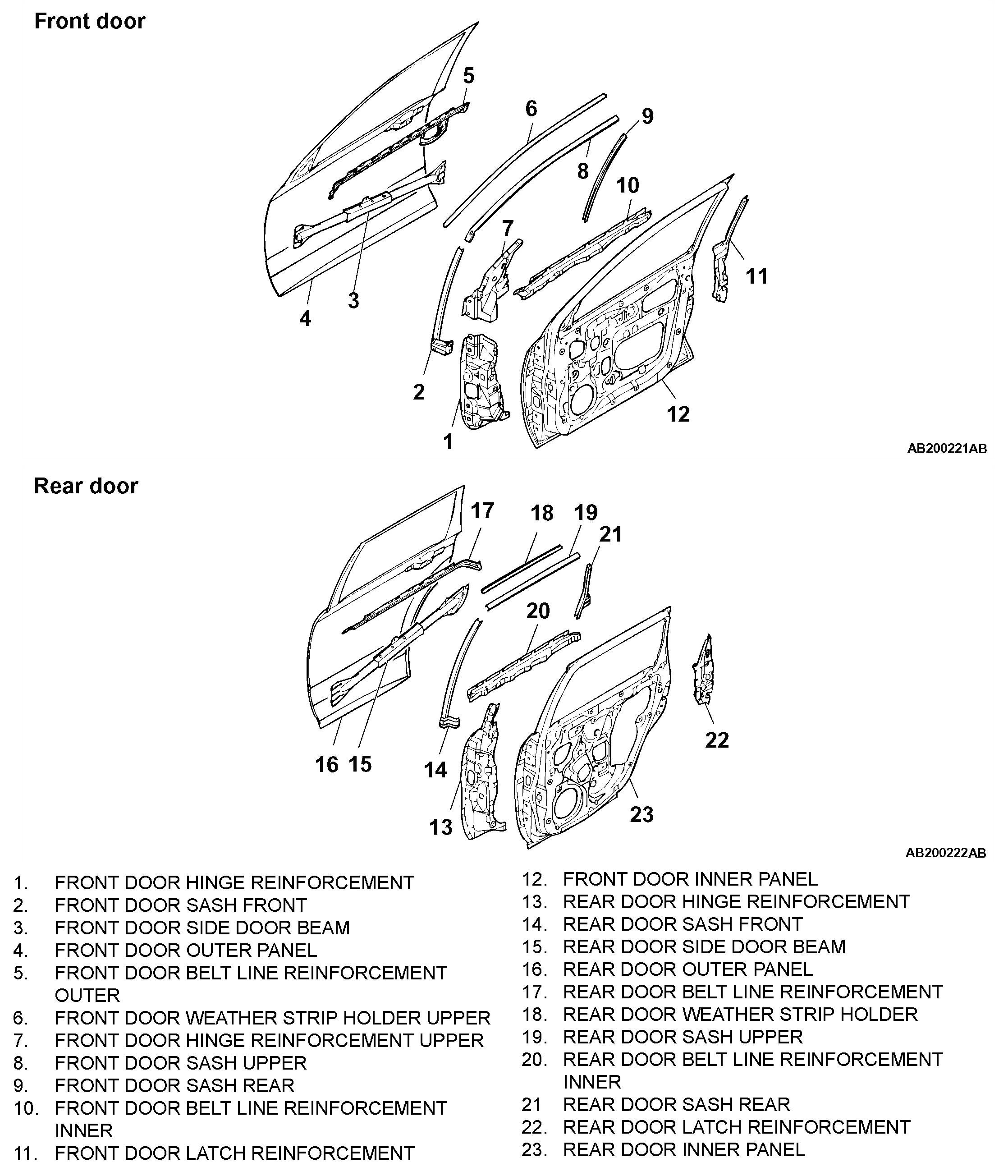 A one-piece top-bottom pressed door structure was employed for the door outer panel and door inner panel to improve door panel rigidity.