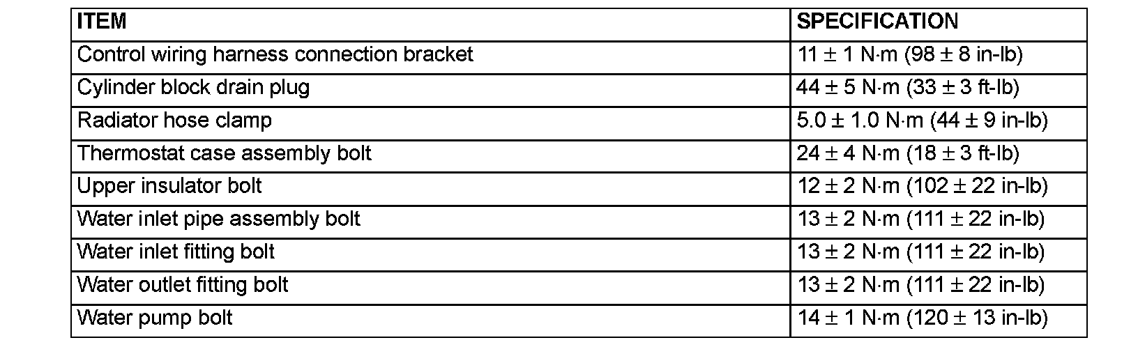 Fastener Tightening Specifications