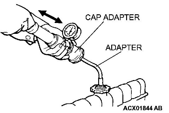 ^ Be careful when installing and removing the tester and when testing not to deform the filler neck of the radiator.