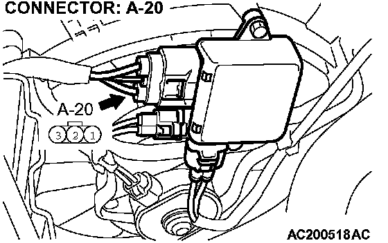 STEP 2. Check the harness wire between fan control relay connector A-10X (terminal 2) and fan control module connector A-20 (terminal 3).