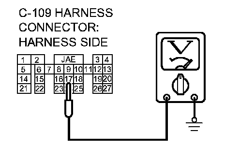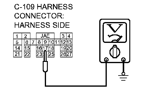 STEP 3. Measure the output circuit voltage at PCM connector C-109 (terminal 17) by backprobing.