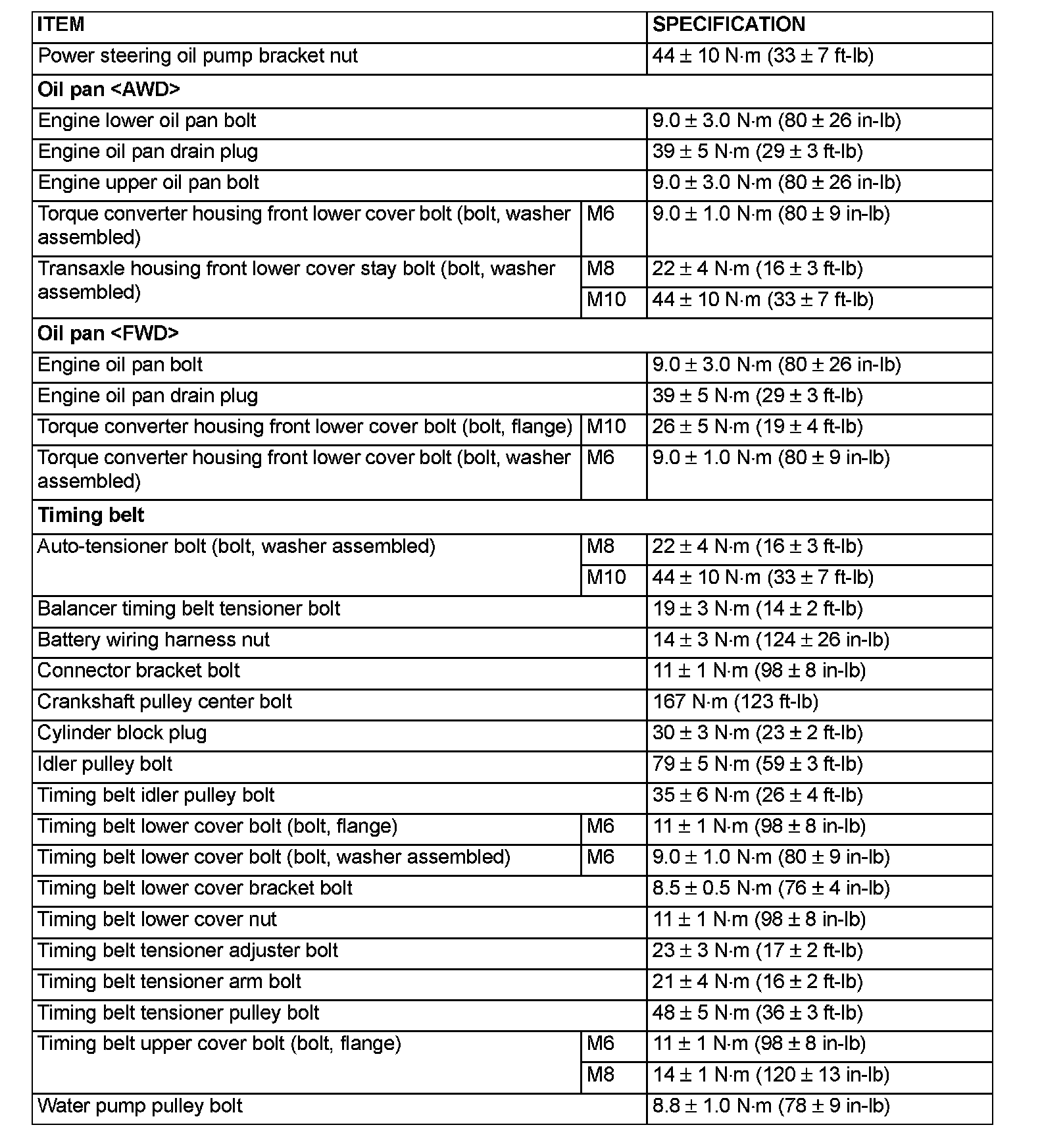 Fastener Tightening Specifications