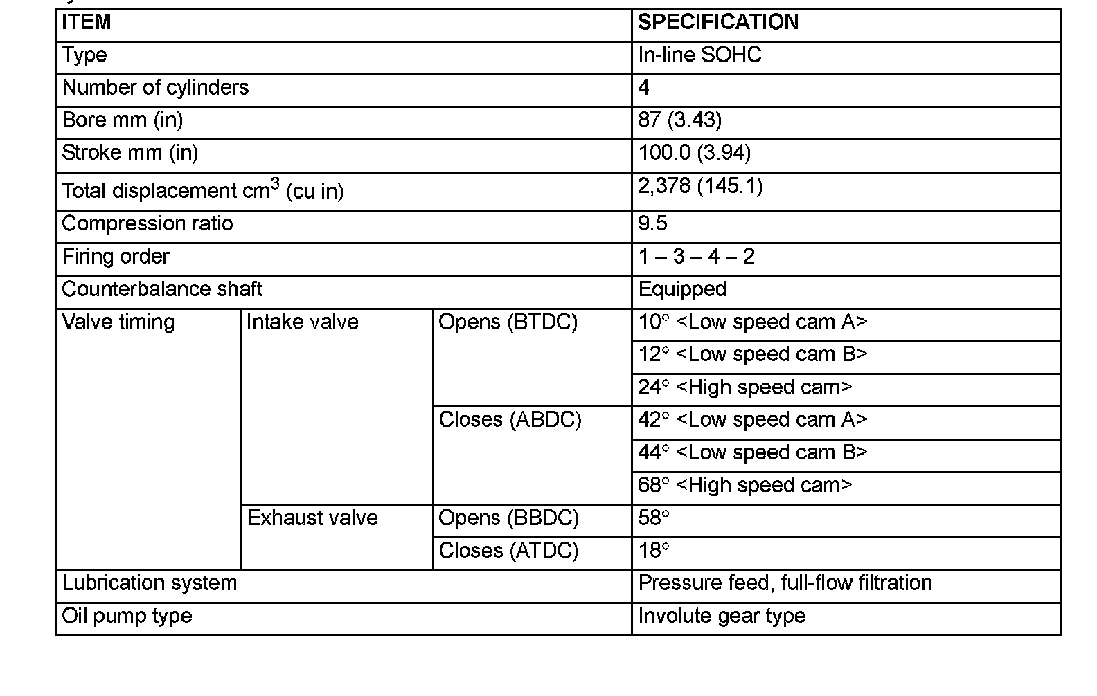 The 4G69 (2.4L) engine is an in-line four cylinder engine. The cylinder numbers are assigned as 1 - 2 - 3 - 4 from the front of the engine (timing belt side).
