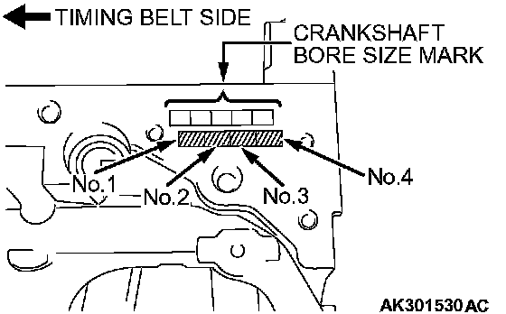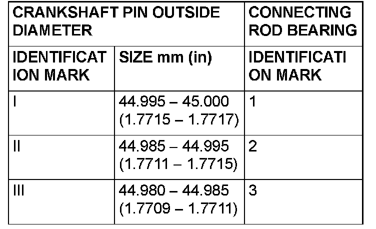 2. If the crankshaft pin outside diameter identification mark is "1", for example, select a bearing whose identification mark is "1 ". If there is no identification color paint on the crankshaft, measure the pin outside diameter and select a bearing appropriate for the measured value.