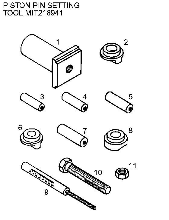 5. Slide the piston pin over the threaded end of the press pin, and thread the correct guide pin up against it.
