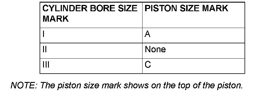 NOTE: The piston size mark shows on the top of the piston.