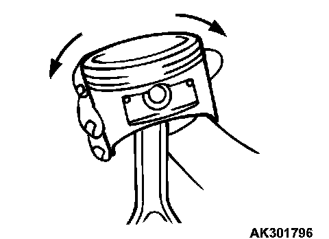 1. Insert the piston pin into the piston pin hole with your thumb. You should feel a slight resistance. Replace the piston pin if it can be easily inserted or there is an excessive play.