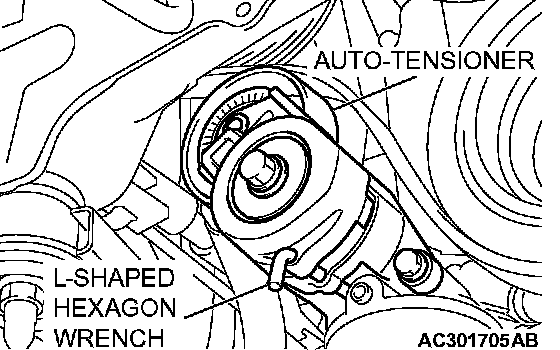 3. Insert an L-shaped hexagon wrench, etc. into the hole to fix and then remove the drive belt.