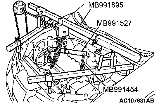 2) [Special tool MB991895 is used] Set special tool MB991895.