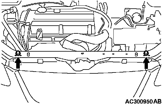 1. Pre-tighten the two bolts on the car to assemble the radiator support upper insulator to set special tool MB991928 or MB991895.