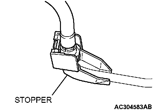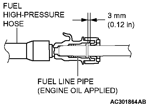 CAUTION: After connecting the fuel high-pressure hose, slightly pull it to ensure that it is installed securely. Also confirm that there is a play approximately 3 mm (0.12 inch). Then install the stopper securely.