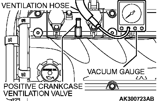 3. Disconnect the ventilation hose from the positive crankcase ventilation valve, and connect a vacuum gauge to the ventilation hose.