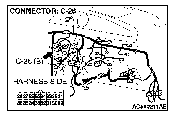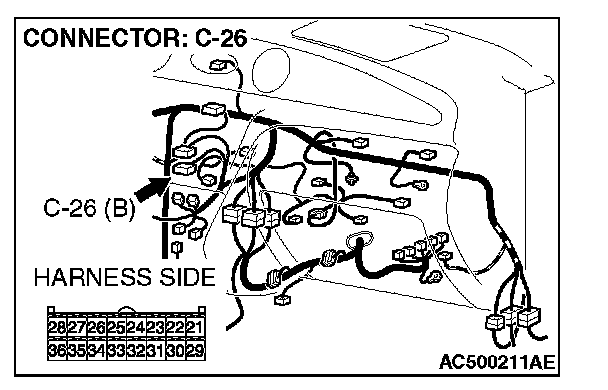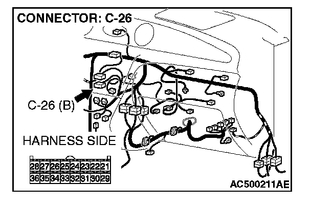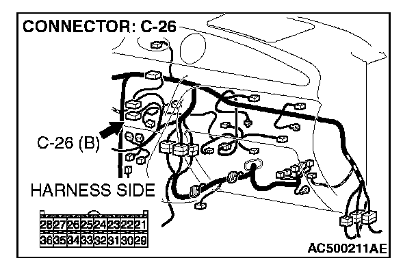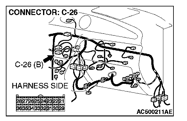 STEP 2. Check A/C-ECU connector C-26 for loose, corroded or damaged terminals, or terminals pushed back in the connector.