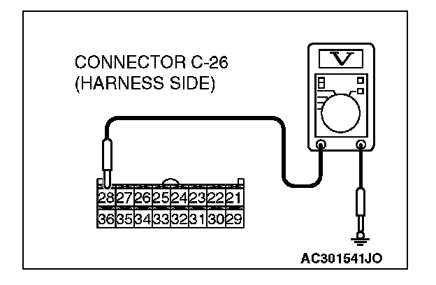 STEP 1. Measure the voltage at A/C-ECU connector C-26.