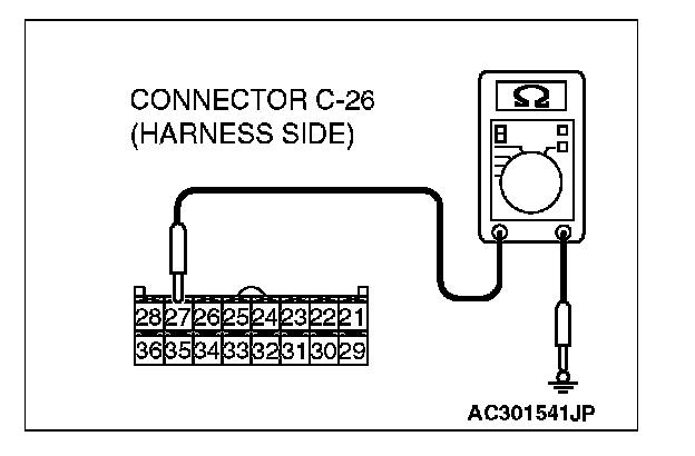 STEP 4. Measure the resistance at A/C-ECU connector C-26.