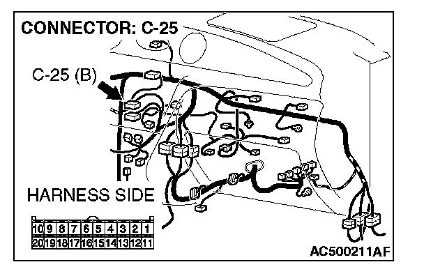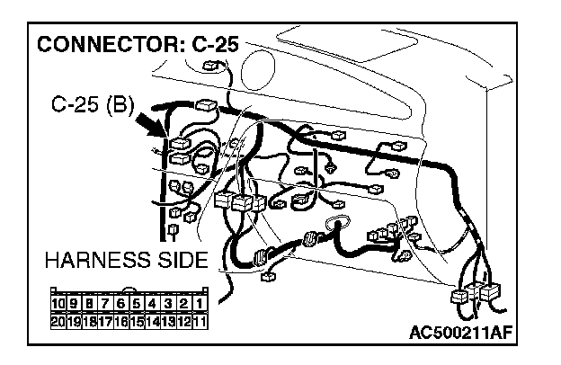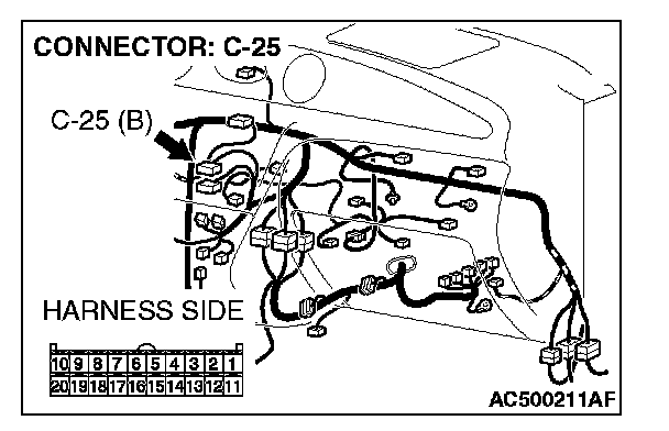 STEP 8. Check A/C-ECU connector C-25 for loose, corroded or damaged terminals, or terminals pushed back in the connector.
