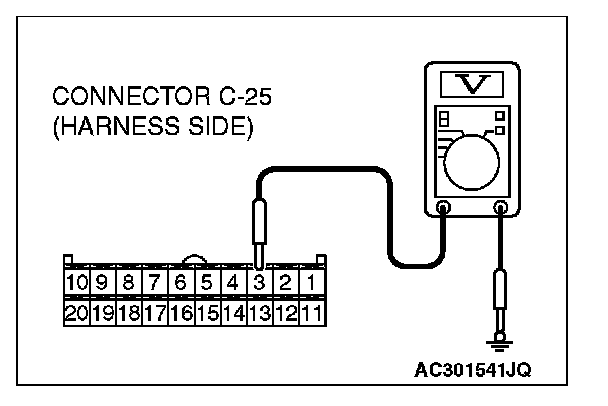 STEP 7. Measure the voltage at A/C-ECU connector C-25.