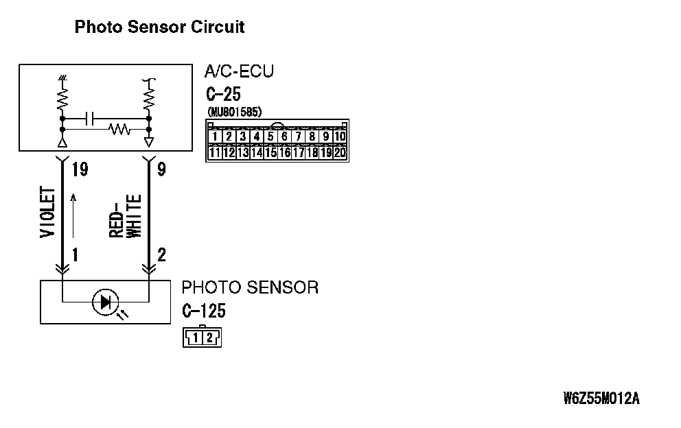 INSPECTION PROCEDURE 6: When Sunlight Intensity Changes, Blower Air Temperature does not Change.Photo Sensor Circuit Part 1: