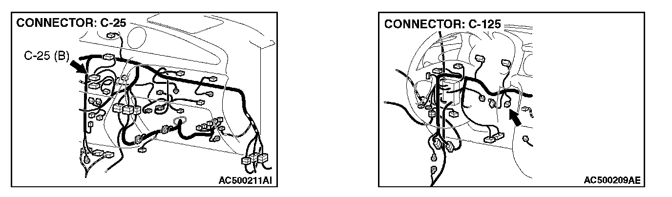 STEP 4. Check A/C-ECU connectors C-25 and photo sensor connector C-125 for loose, corroded or damaged terminals, or terminals pushed back in the connector.