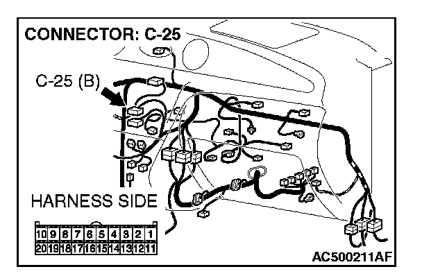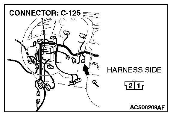 STEP 5. Check the wiring harness between A/C-ECU connector C-25 (terminal 9, 19) and photo sensor connector C-125 (terminal 2 and 1).