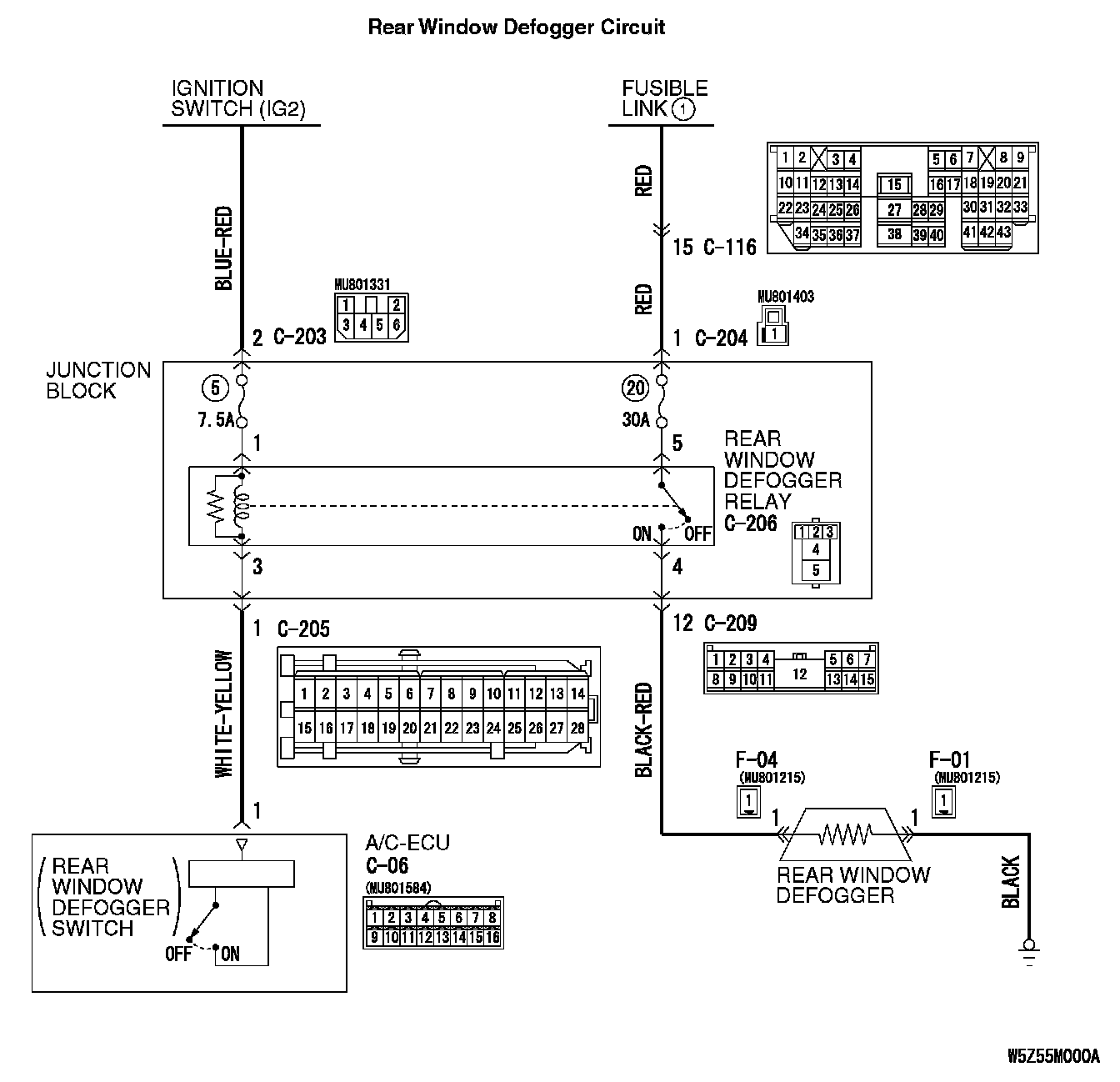 INSPECTION PROCEDURE 8: Defroster Function does not Operate.Rear Window Defogger Circuit Part 1: