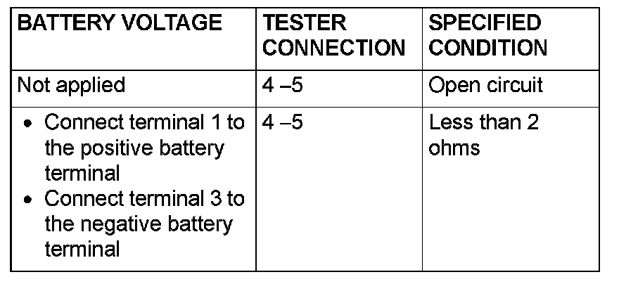 2. Measure the resistance value between terminal 1 and ground.2 ohm or less