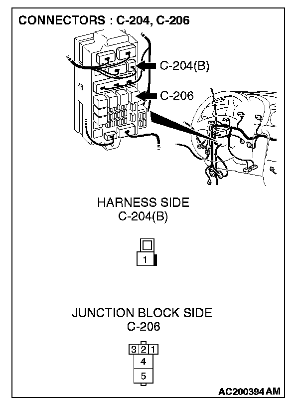 NOTE: Also check junction block connector C-204 and intermediate connector C-116. If junction block connector C-204 and intermediate connector C-116 is damaged, repair or replace the connector as described in Harness Connector Inspection.