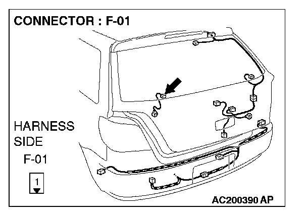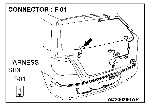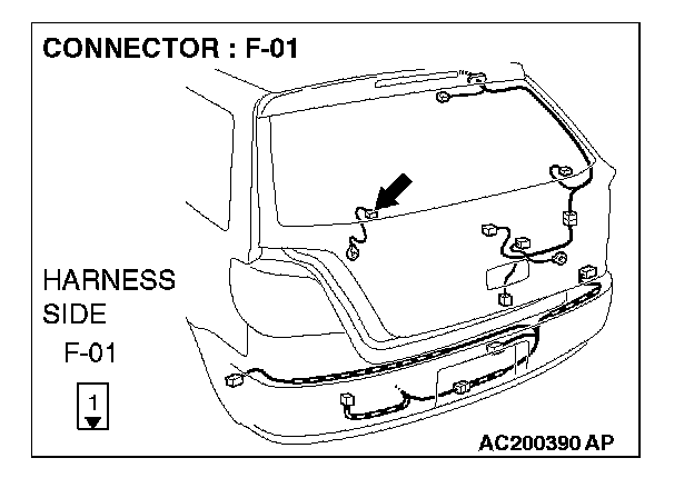 1. Disconnect rear window defogger connector F-01, and measure at the wiring harness side.