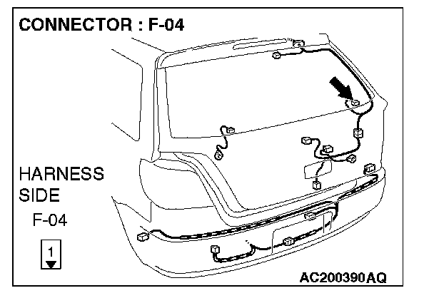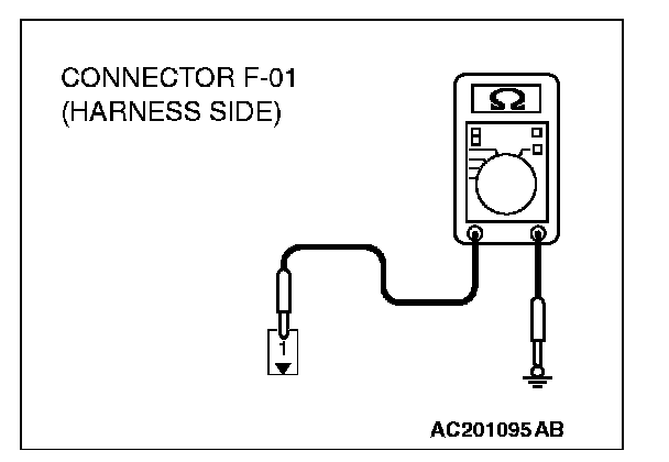 STEP 13. Measure at rear window defogger connector F-01 to check the ground circuit to the rear window defogger connector.