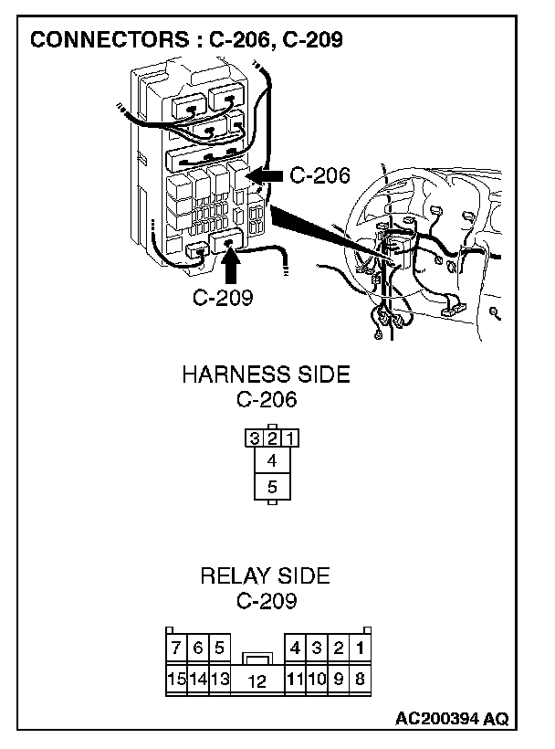 STEP 5. Check rear window defogger relay connector C-206 for damage.
