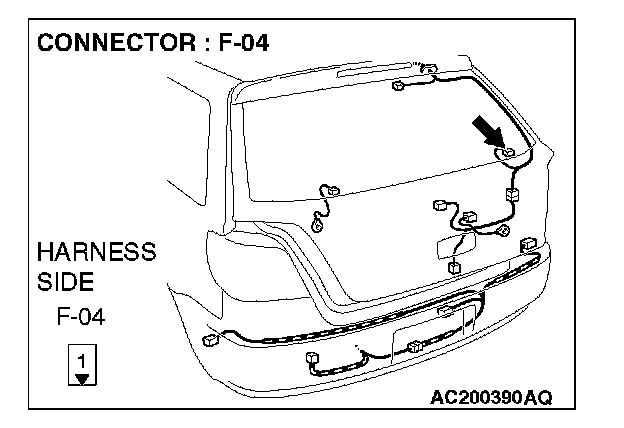 STEP 15. Check the wiring harness between rear window defogger connector F-01 (terminal 1) and ground.