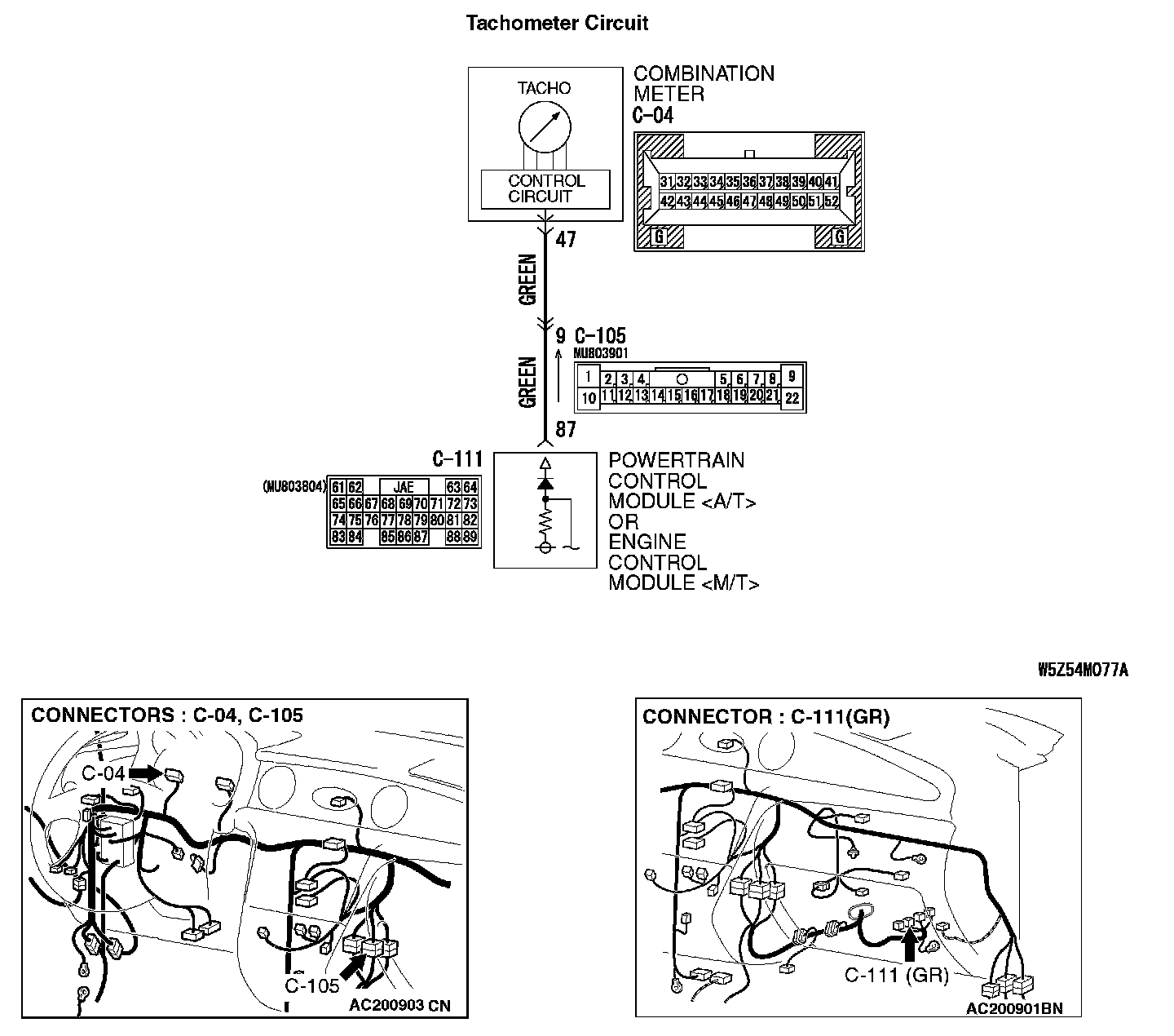 INSPECTION PROCEDURE 2: Tachometer does not Work.Tachometer Circuit:
