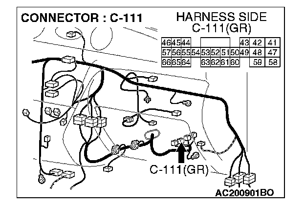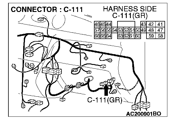 NOTE: Also check intermediate connector C-105. If intermediate connector C-105 is damaged, repair or replace the connector as described in Harness Connector Inspection.